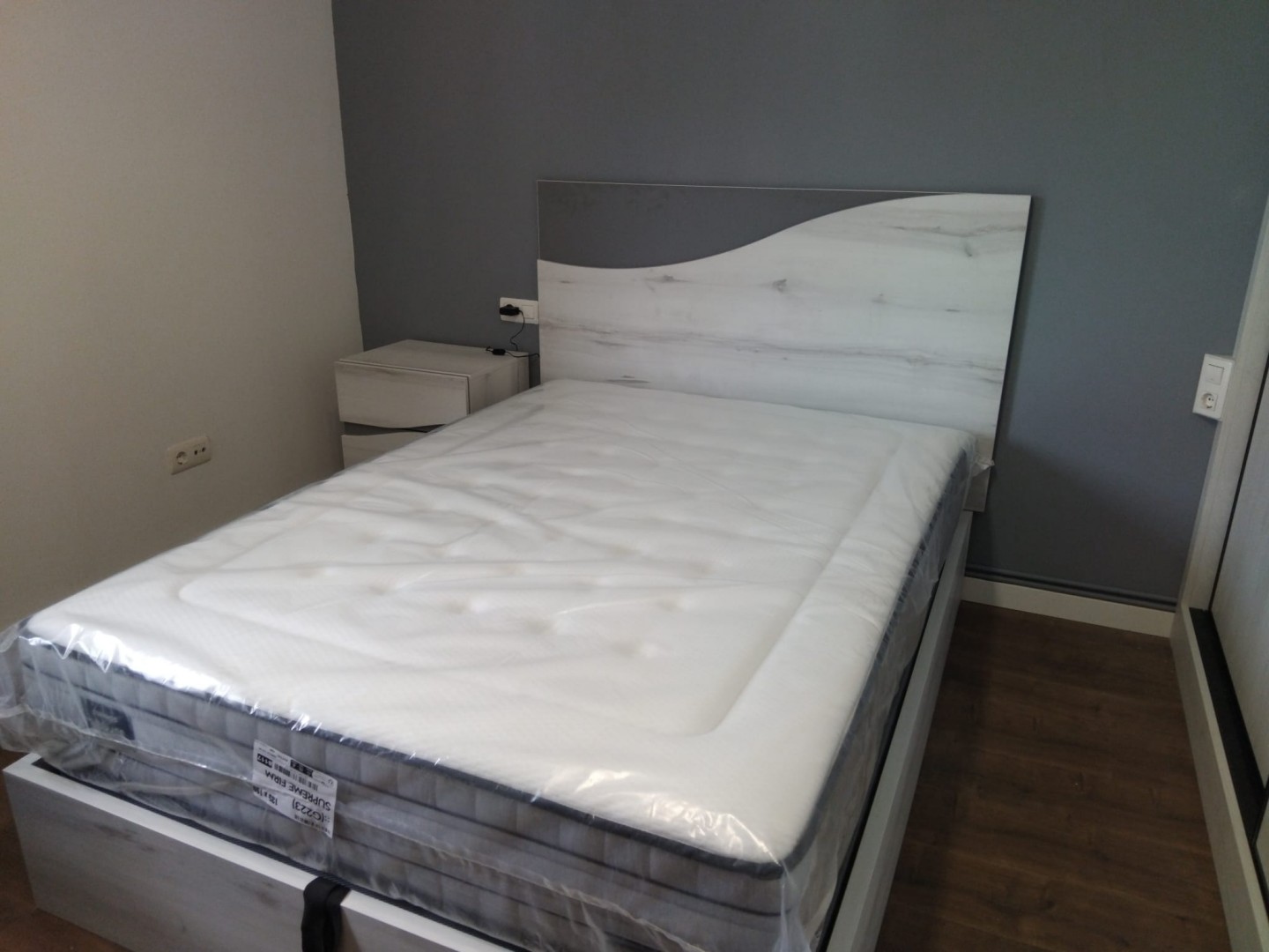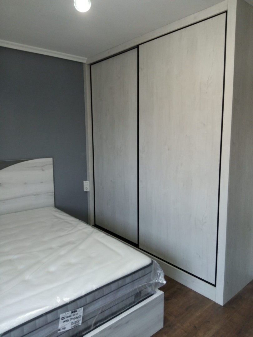 Este trabajo realizado corresponde a un dormitorio a medida de estilo moderno, diseñado para crear un ambiente equilibrado, luminoso y funcional. El conjunto combina cama, cabecero, mesillas y armario corredero, logrando una estética uniforme y una distribución pensada para el descanso y el orden diario.