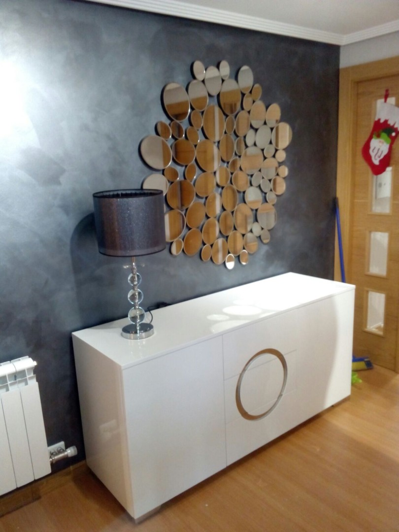 - Espejo decorativo inspirado en formas orgánicas, compuesto por múltiples piezas circulares.